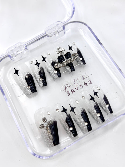 P268 Black Crystal Wearable Armor Short Round press on nails