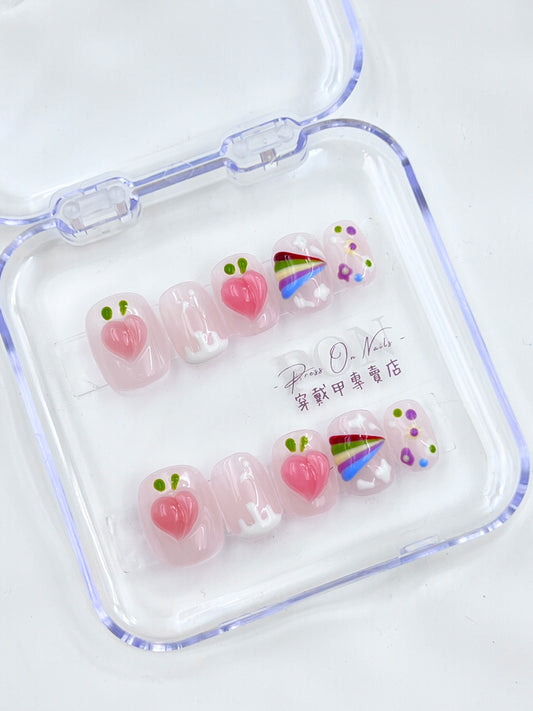 P477 Rainbow Peach Wearing Armor Purely Handmade press on nails