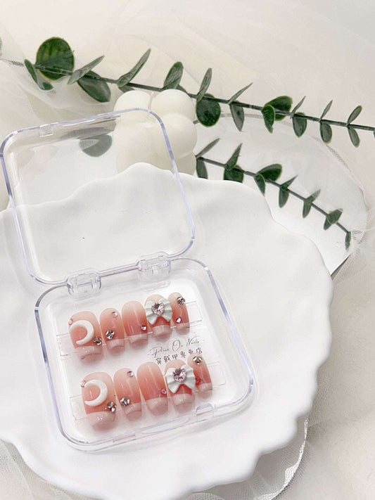 M589 Beautiful Girl Diamond French Handmade press on nails