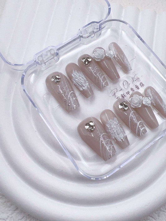 M307 Oolong milk cover press on nails, pure handmade press on nails