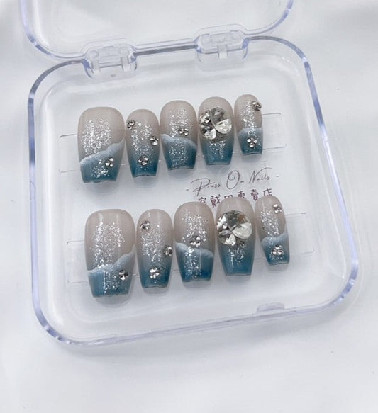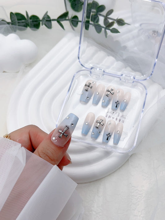 P294 Aqua Blue Gradient Cross press on nails Purely Handmade press on nails