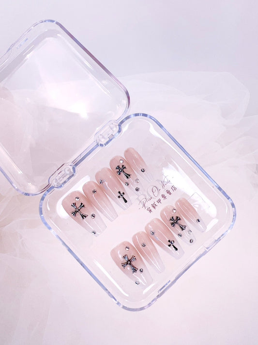 P144 Sequined Nude Loving Girl Long Ladderpress on nails